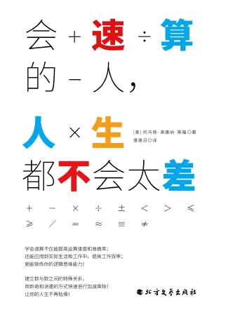 《会速算的人,人生都不会太差》用新奇、有趣、实用的方式教会我们怎样快速地进行加减乘除,让数算变得简单、快捷、。全书读来,毫无晦涩之感,反而让人有欲罢不能之感,极欲一下子读罢全书,掌握所有的有效、富有技巧的计算方法。本书实用、趣味、可操作,值得大家一读。